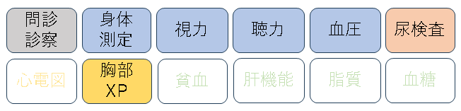(問診/診察・身長・体重・視力・聴力・尿検査・胸部XP)
