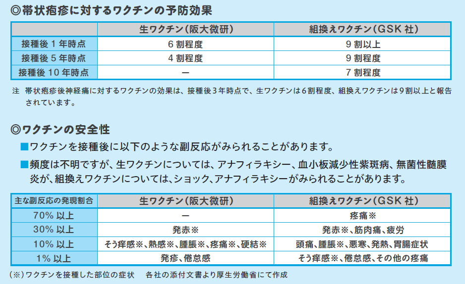 ♦帯状疱疹の定期接種の対象となる前に、生ワクチンを1回又は、組換えワクチンを2回接種したことのある方は、基本的には定期接種の対象となりませんが、当該予防接種を行う必要があると医師が判断した場合は、定期接種として接種が可能です。予約、受付の時点で過去の接種歴を確認し、定期接種の対象となるかご確認ください。